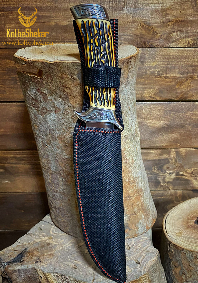 کاردشکاری کلمبیا طرح شاخ ، طول تیغه 18.5 سانتیمتر ، طول دسته 11.5 سانتیمتر ، ضخامت تیغه 3 میلیمتر ، دارای غلاف برزنتی مناسب طبیعتگردی و شکار و آفرود