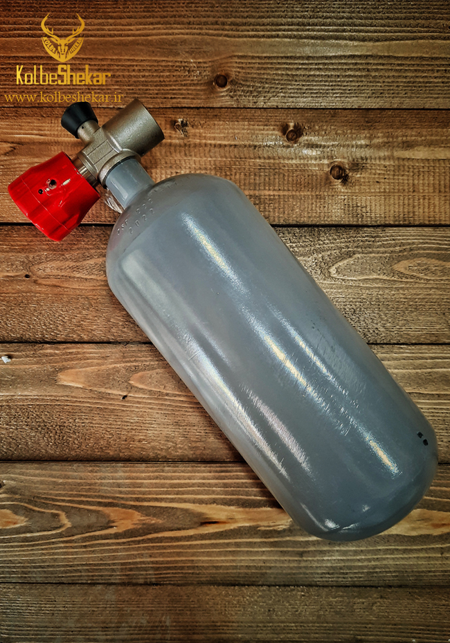 کپسول فلزی آلمانی با حجم 2 لیتر و فشار 450 بار دارای شیر قابل استفاده برای انواع تفنگ های پی سی پی